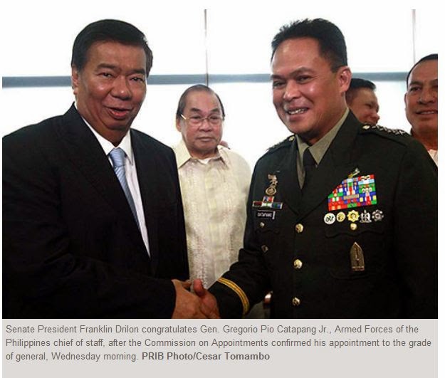 MANILA, Philippines - The Commission on Appointments (CA) on Wednesday confirmed the promotion of Armed Forces of the Philippines chief of staff Gregorio Catapang Jr. following the successful escape of the Filipino peackeepers in Golan Heights.