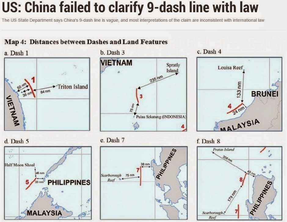 The paper reiterated earlier statements of State Department officials asking China to clarify the 9-dash line.